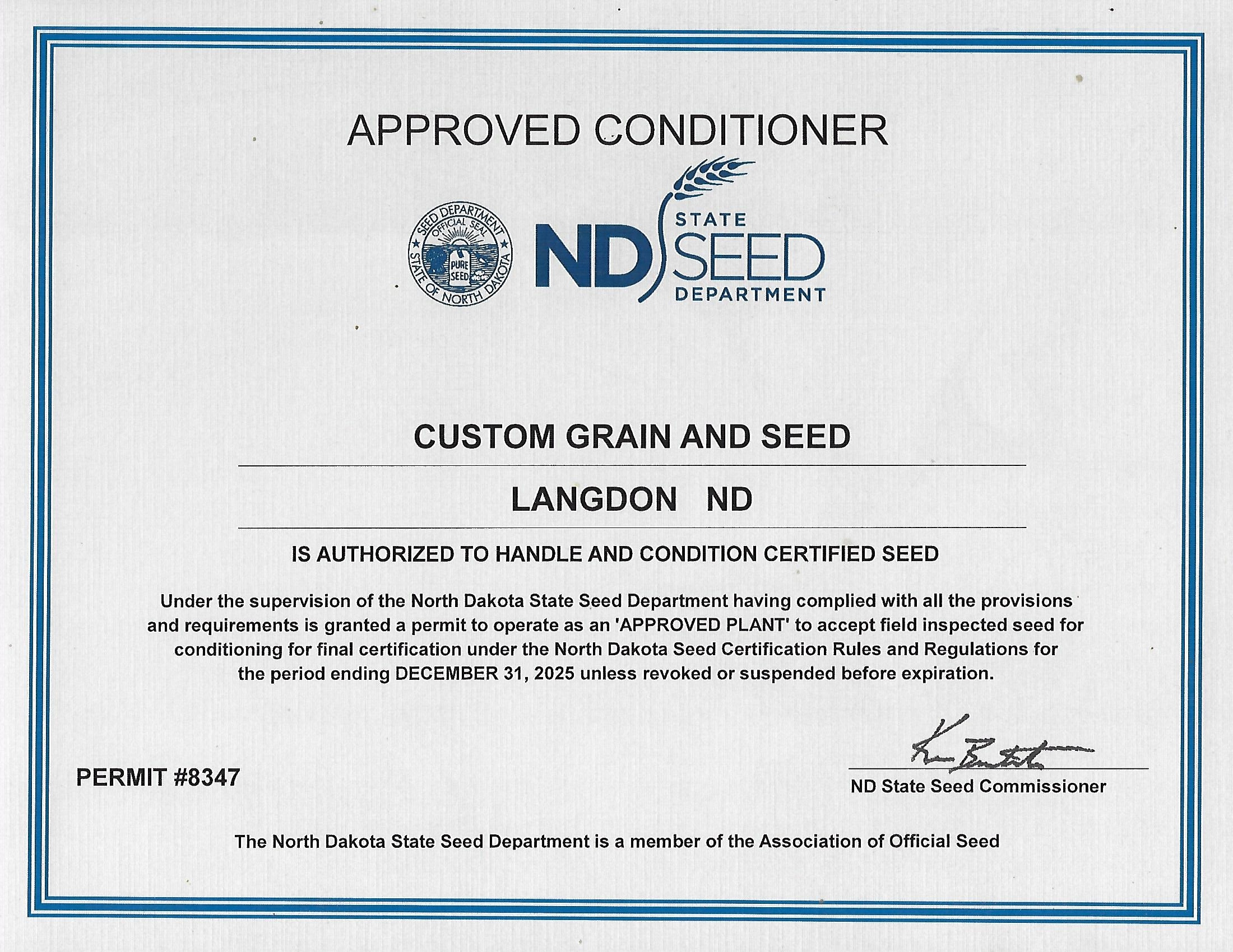 In North Dakota, Custom Grain & Seed is your trusted partner for certified seed conditioning and processing. Our services ensure that your seeds meet all necessary cleaning standards, providing you with peace of mind. The meticulous process of seed cleaning reflects our commitment to quality and compliance, ensuring your seeds are ready for planting or resale.